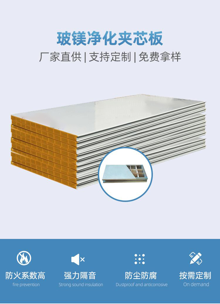 1、組裝板墻、裝飾吊頂板前,檢查玻鎂彩鋼夾芯板的原材料、品種、規(guī)格、特性、芯板,合格證是否符合設(shè)計(jì)要求;必要時(shí),對(duì)樣品進(jìn)行性能指標(biāo)